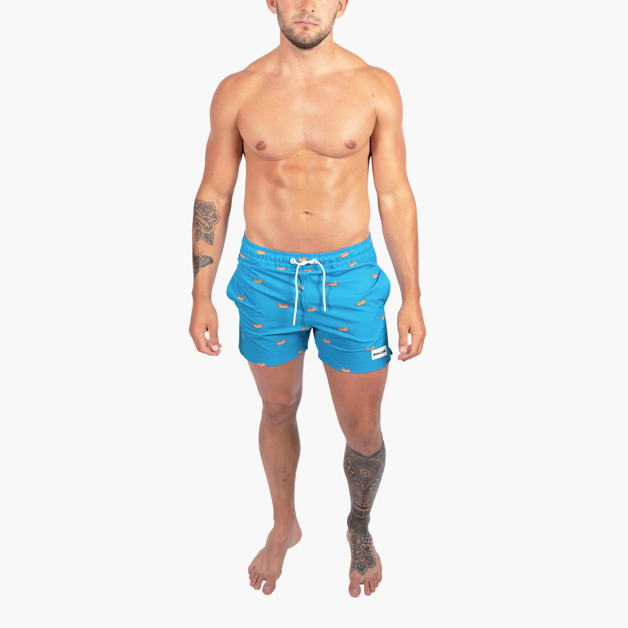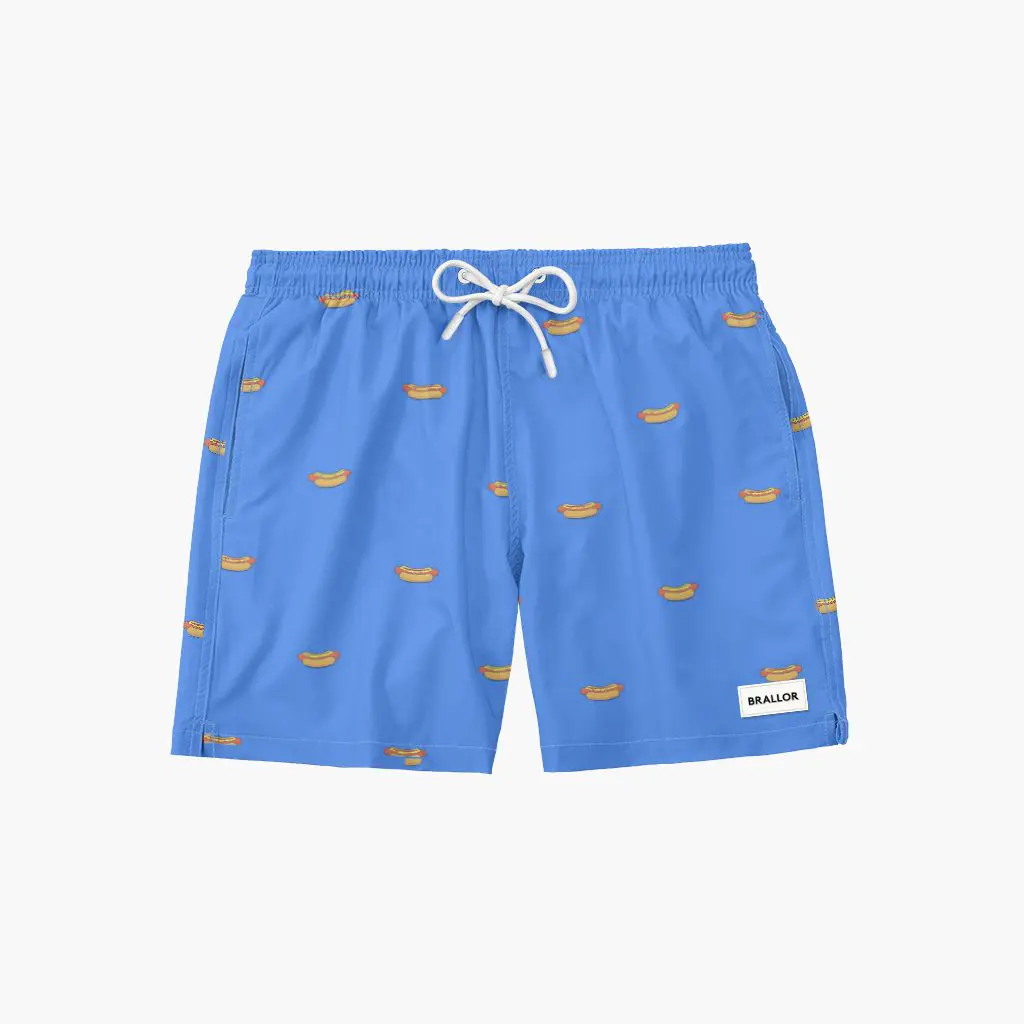 Stilrent, komfortabelt och framförallt hållbart. Våra varmkorv brallor är skapade med unika tryck, i utstickande färger och med schyssta silikondetaljer fram och bak. Med en slimmad passform och snitt på sidorna sitter dessa som en smäck oavsett kroppsform. Snabbtorkande tyg i 90% polyester och 10% elastane ger dessutom en härlig fyrvägsstretch. Varje par är tillverkade av fem återvunna plastflaskor.